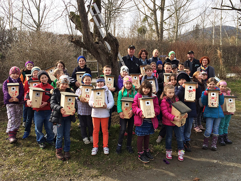 Das ist gelebter Artenschutz! Johann Prem von der Berg- und Naturwacht St. Johann bei Herberstein hat Nistkästen gebaut und in die Volksschule gebracht. Dort wurden sie von den 31 Schülerinnen und Schülern verziert und mit Namen versehen. Schließlich hat jedes Kind seinen Nistkasten auf der Streuobstwiese am Parkplatz der Tierwelt Herberstein aufgestellt. Die Häuser werden Heim und Nistplatz für unsere heimischen Vögel wie zB. Meisen sein. Die Kinder werden die Nistkästen regelmäßig kontrollieren und ihre Bewohner beobachten. Die Erfahrungen werden im Unterricht noch genau unter die Lupe genommen – so macht lernen Spaß!